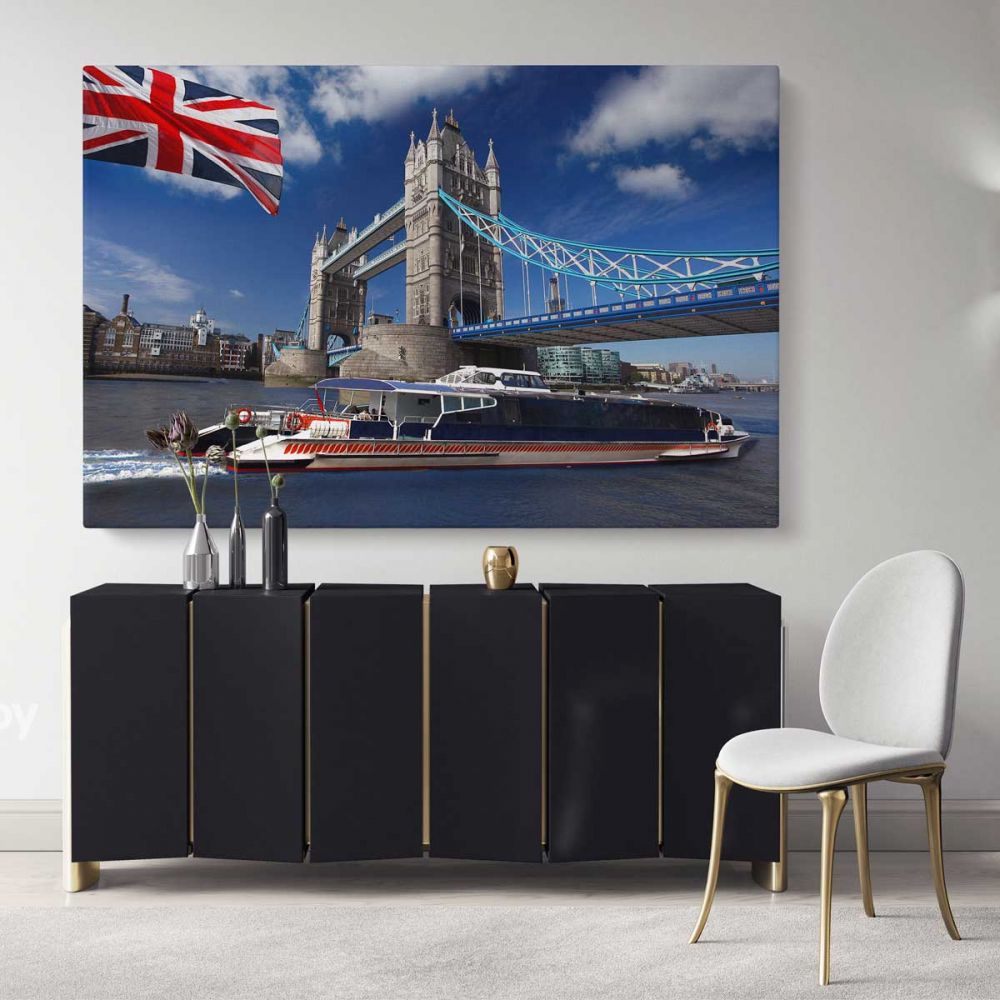British Flag motor ship Tower Bridge London City Landscape Canvas with Frame Wall Hangings Print Home Decor Living Room Bedroom Mural Gift is available to buy in increments of 1