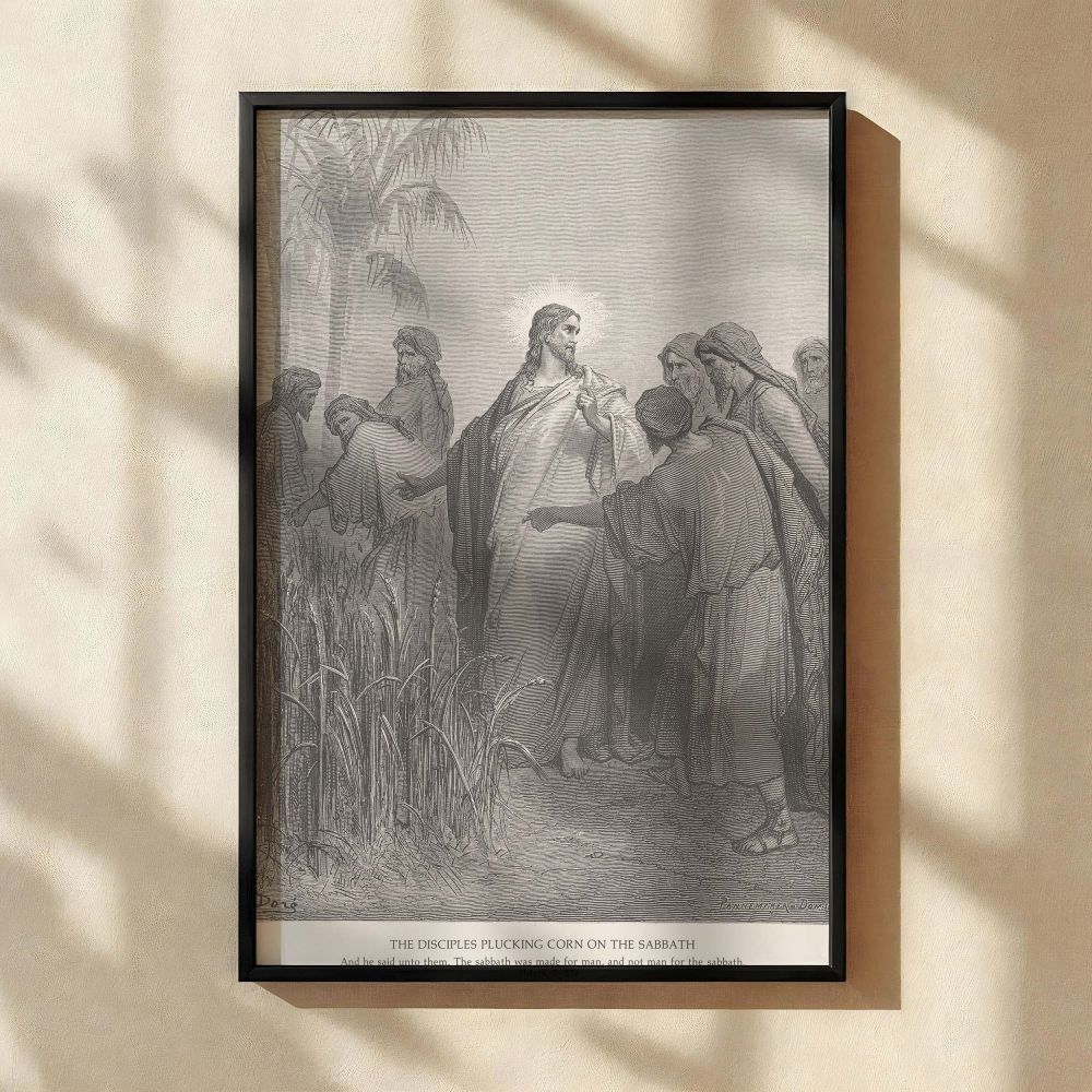 The Disciples Pluck Grain on the Sabbath canvas wall art by Gustave Dore biblical engraving Jesus teaches law & grace Christian decor print