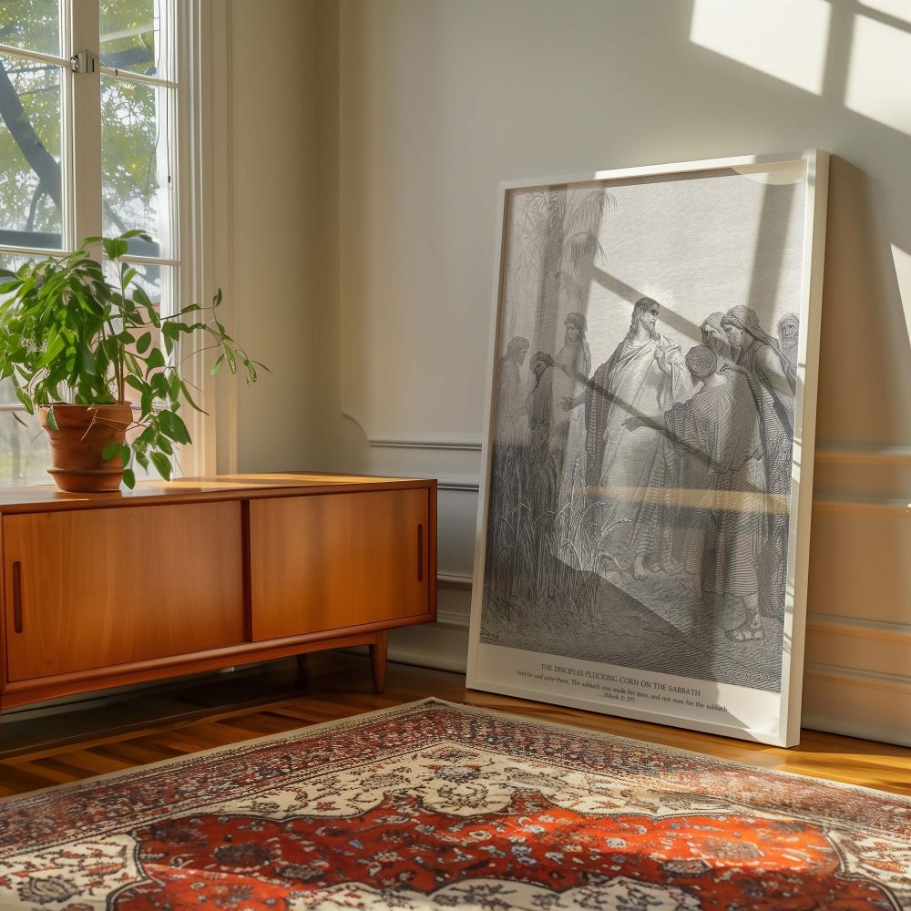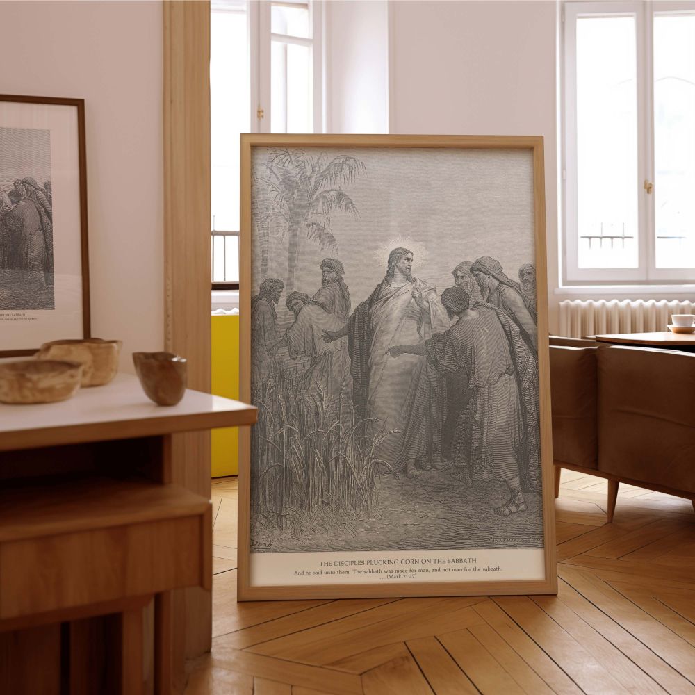 Let The Disciples Pluck Grain on the Sabbath canvas wall art by Gustave Dore serve as a visual reminder of wisdom, divine perspective, and the grace-filled interpretation of God's law. A sacred scene that continues to resonate today.
