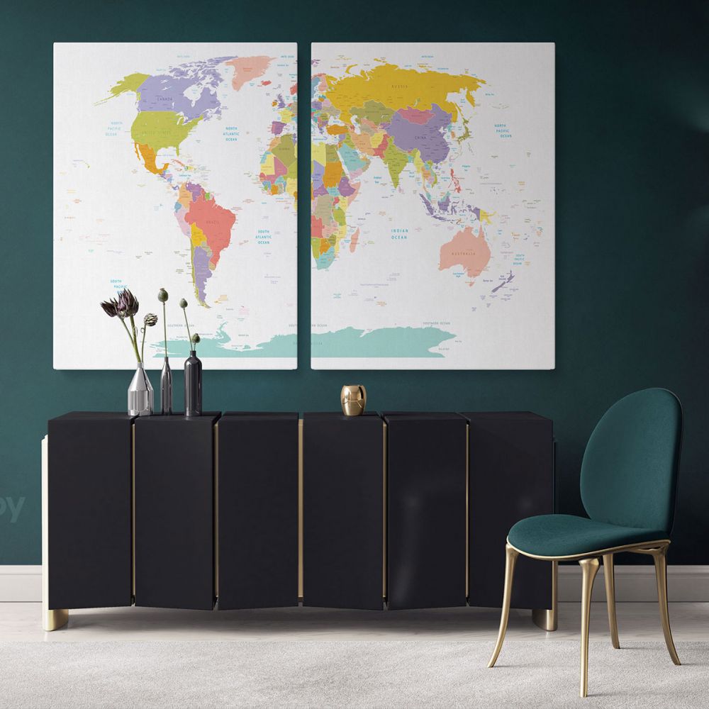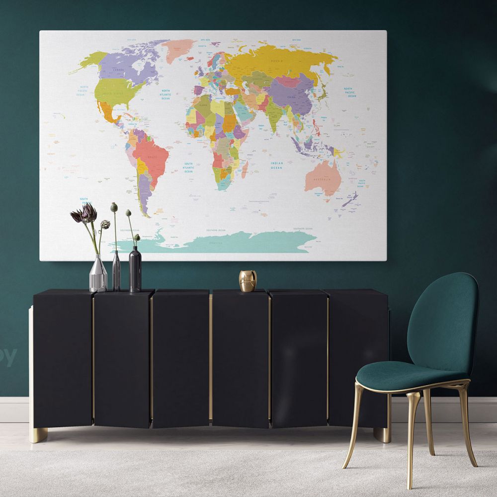 Large Colorful World Map with Names in Different Size Wall Map Canvas Artwork Canvas Decor Home Gift Office Living Room For Wall Decor is available to buy in increments of 1