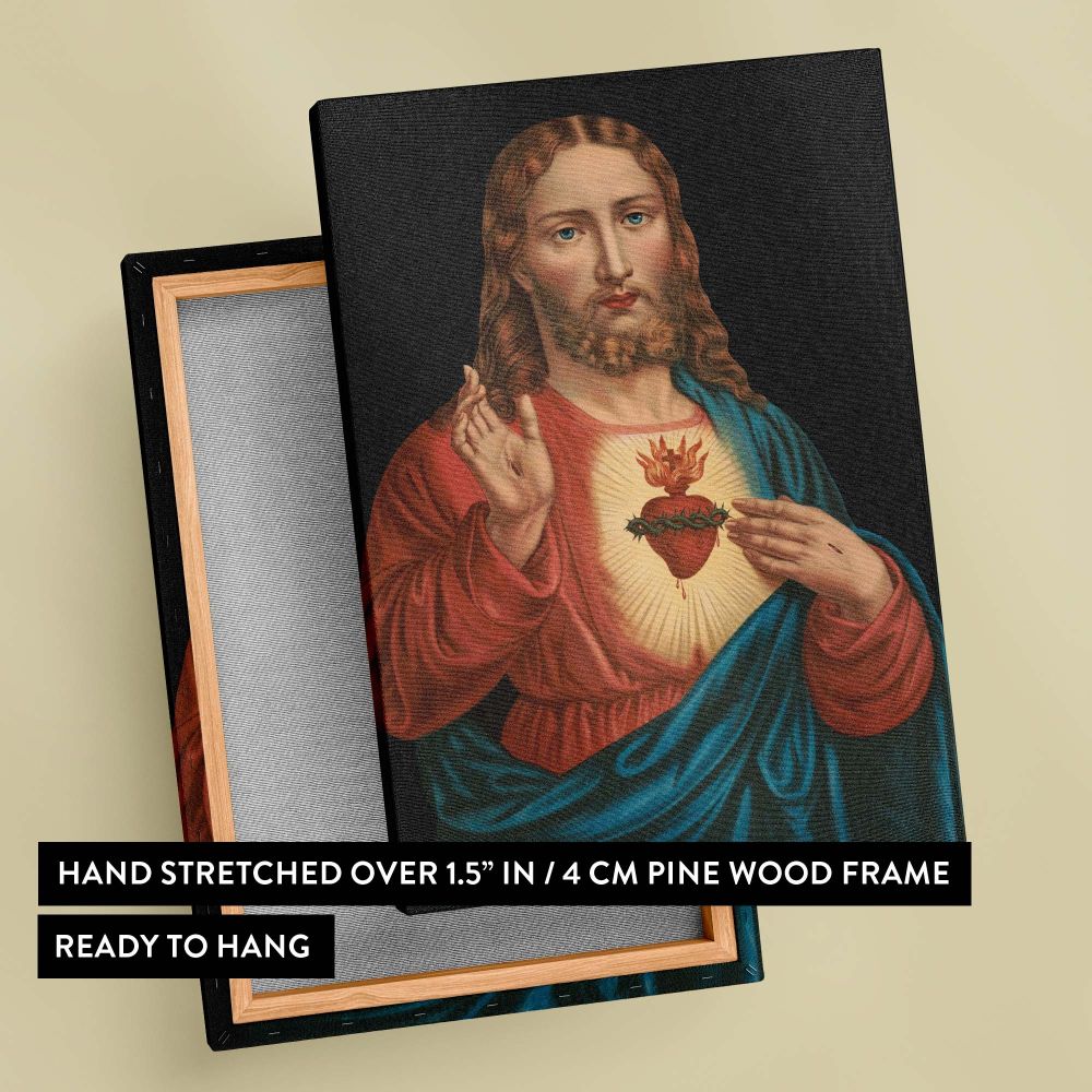 Printed on high-quality gallery-wrapped canvas, this museum-grade reproduction preserves the vibrant colors, fine details, and spiritual essence of the original artwork. The premium canvas is professionally stretched over a sturdy wooden frame, ensuring a ready-to-hang display that brings spiritual inspiration to any space. Whether placed in a meditation room, altar, or Christian home, this iconic Sacred Heart image creates an atmosphere of peace and divine grace.